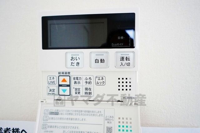 キッチン横からお湯張り、追い炊き、足し湯がボタン一つで楽々操作できる給湯機リモコンです^^忙しい夕飯の準備の時間帯に重宝しますね。