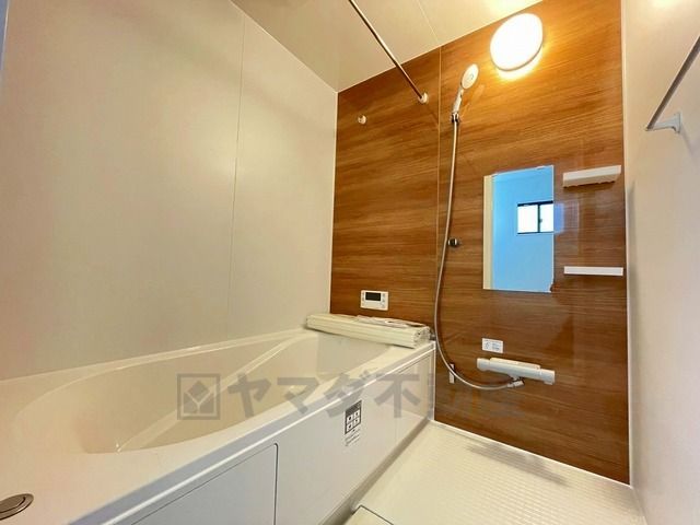 1日の疲れを癒すくつろぎのバスルーム。足を伸ばしてもゆったりと入れるサイズです。お子様と一緒にお風呂に入っても狭くないですね^^