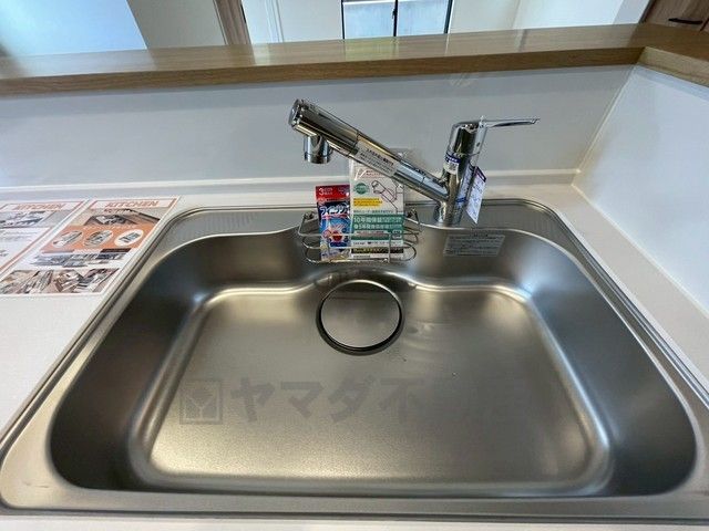 広々とした凸型シンクに洗剤ポケットを標準装備。大きなお鍋など洗いやすいです。洗剤や石鹸、スポンジもすっきりできる収納付き。