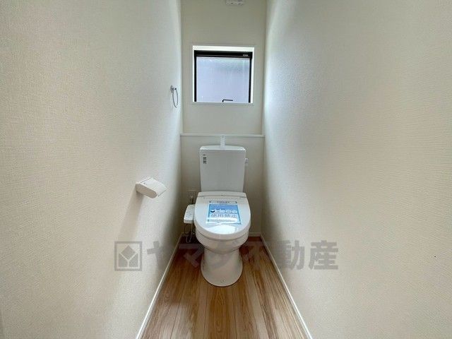温水洗浄機付トイレです。節水機能もあるので、安心して使えますね。もちろん、1階2階の2ヶ所にトイレがあるので、忙しい朝にもゆとりができますね。