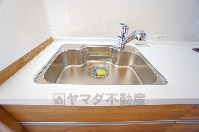 色も形もキレイなシンクは、広さも確保しているので、大きめの鍋も簡単に洗えます。