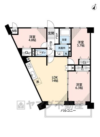 LDK14畳、洋6.3畳、洋5.7畳、洋4.8畳 |
