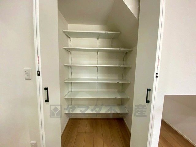 キッチン横パントリー収納。食器やキッチン用品、食料品の保存に便利です^^高さのある物もスッキリ収納できます^^