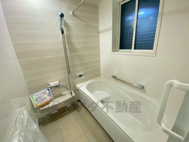 1日の疲れを癒すくつろぎのバスルーム。足を伸ばしてもゆったりと入れるサイズです。お子様と一緒にお風呂に入っても狭くないですね^^