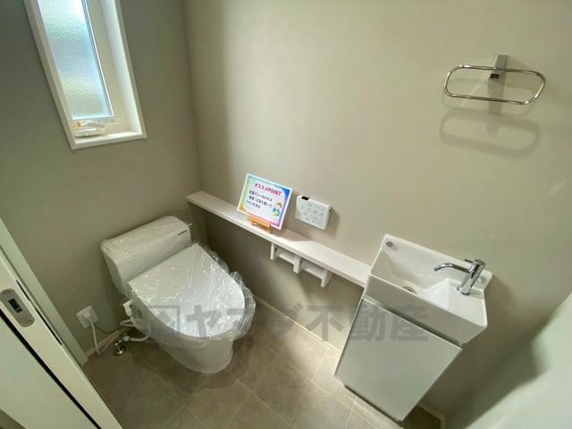 温水洗浄機付トイレです。節水機能もあるので、安心して使えますね。