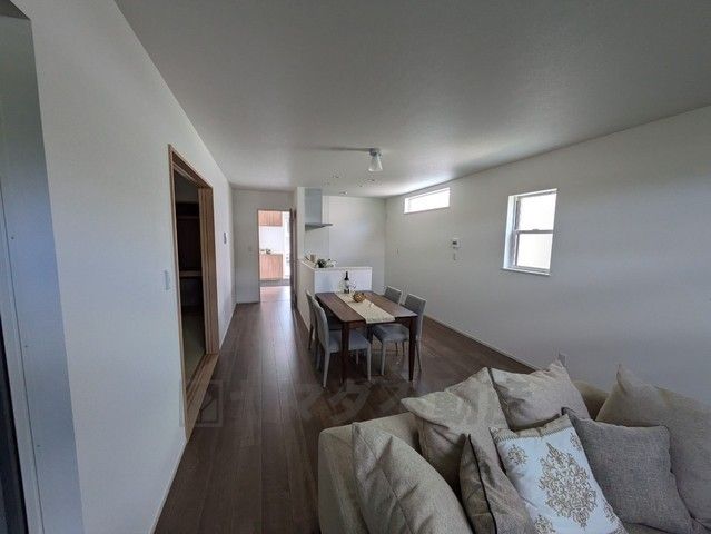 家族が集まる開放的なリビング。約18帖の大空間で毎日のお食事が楽しみです^^思い思いの時間を過ごしたり、家族みんなで食事をしたり、素敵な団らんの場になりますね。