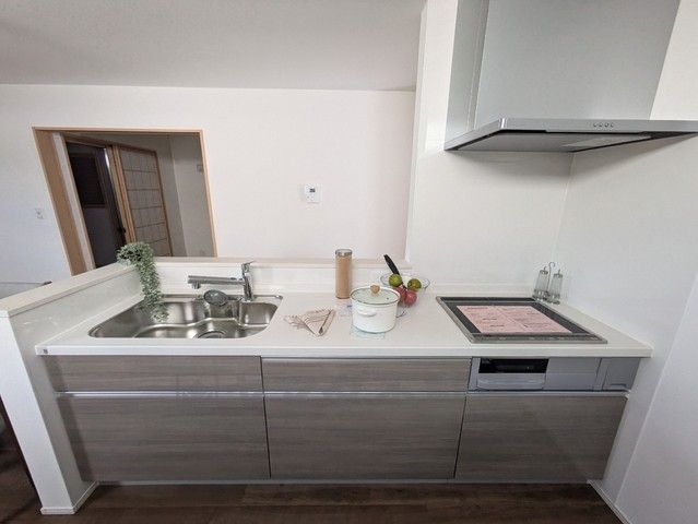 対面式カウンターキッチンでお子様の様子が見守れます。カウンタートップは耐熱性に優れており、日ごろのお掃除もふき取るだけでOK。ステンレスシンクも簡単にお掃除できますよ。