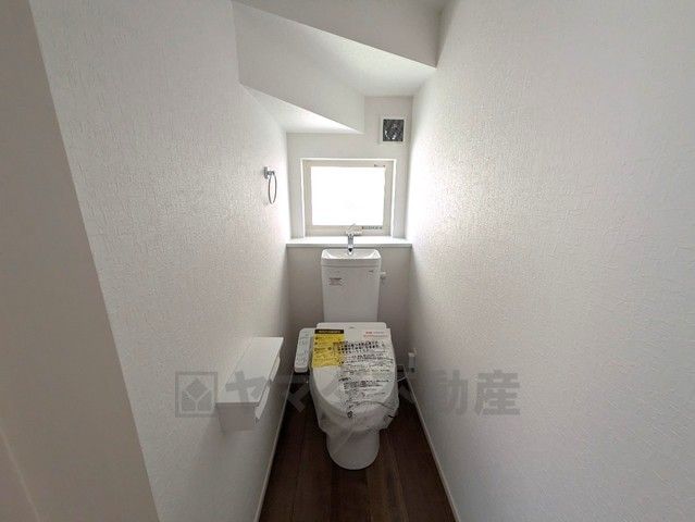 温水洗浄機付トイレです。節水機能もあるので、安心して使えますね。もちろん、1階2階の2ヶ所にトイレがあるので、忙しい朝にもゆとりができますね。