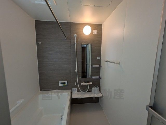 1日の疲れを癒すくつろぎのバスルーム。足を伸ばしてもゆったりと入れるサイズです。お子様と一緒にお風呂に入っても狭くないですね^^