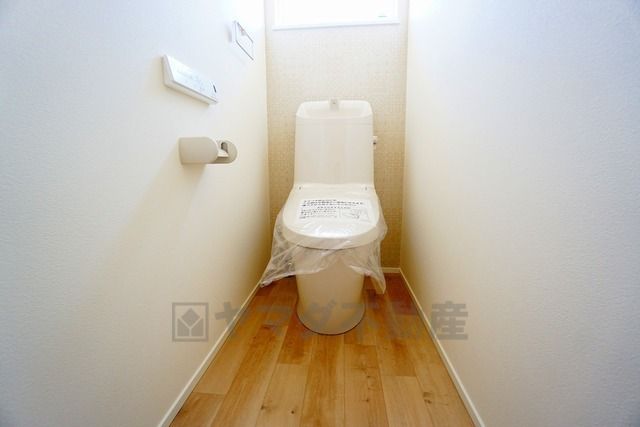 温水洗浄機付トイレです。節水機能もあるので、安心して使えますね。もちろん、1階2階の2ヶ所にトイレがあるので、忙しい朝にもゆとりができますね。