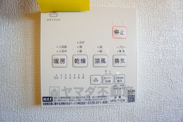 雨の日の洗濯も安心できる浴室暖房乾燥機付き浴室。リモコンで操作もボタン1つで簡単。 浴室暖房乾燥機には、暖房、乾燥、涼風、換気の4つの機能が付いています。タイマー付きです。