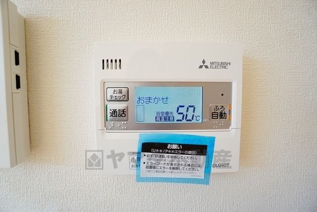 キッチン横からお湯張り、追い炊き、足し湯がボタン一つで楽々操作できる給湯機リモコンです^^忙しい夕飯の準備の時間帯に重宝しますね。
