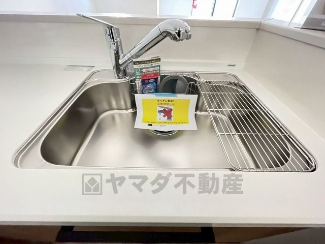 広々とした凸型シンクに洗剤ポケットを標準装備。大きなお鍋など洗いやすいです。洗剤や石鹸、スポンジもすっきりできる収納付き。