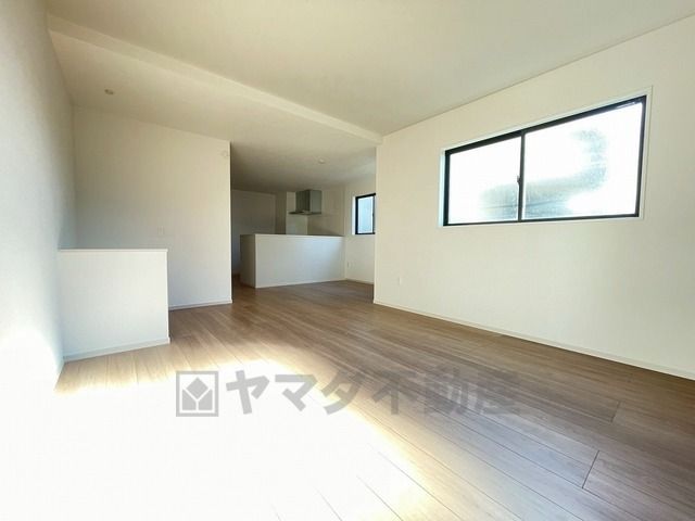 大きな窓のあるリビングは、陽光あふれる明るい空間です。居心地良く、ご家族皆がゆったり寛げる憩いの空間となりそうです。