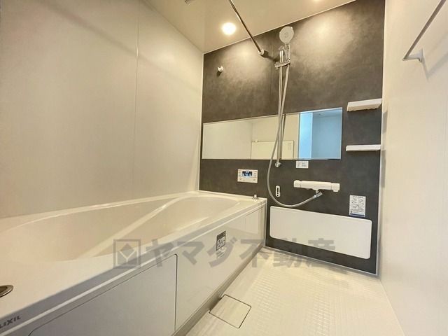 1日の疲れを癒すくつろぎのバスルーム。足を伸ばしてもゆったりと入れるサイズです。お子様と一緒にお風呂に入っても狭くないですね^^