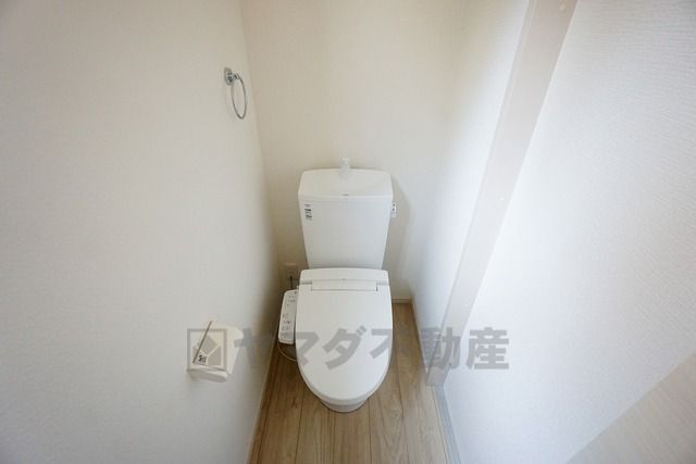 同仕様写真。温水洗浄機付トイレです。節水機能もあるので、安心して使えますね。もちろん、1階2階の2ヶ所にトイレがあるので、忙しい朝にもゆとりができますね。