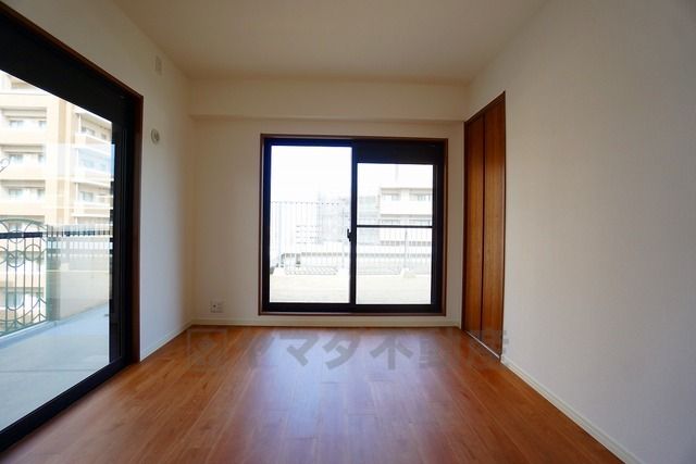 明るい洋室です。ナチュラル色のフローリングで開放的な優しい雰囲気になっています^^ベッドや机、TVを置いてもゆとりのある広さです。