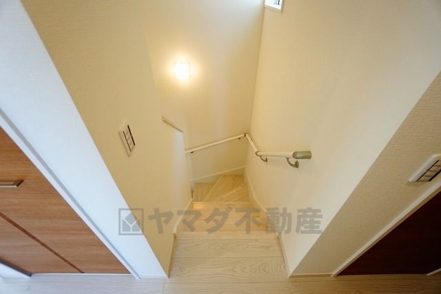 同仕様写真。ご年配の方でも安心できる、手すり付き階段です^^段差も低めで設定されてますので安全性にも優れてますね^^