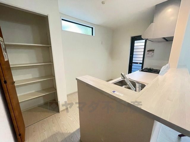 キッチン横パントリー収納。食器やキッチン用品、食料品の保存に便利です^^高さのある物もスッキリ収納できます^^