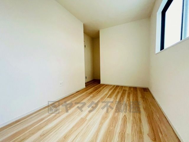 明るい洋室です。ナチュラル色のフローリングで開放的な優しい雰囲気になっています^^ベッドや机、TVを置いてもゆとりのある広さです。