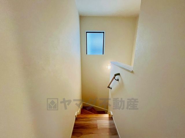 ご年配の方でも安心できる、手すり付き階段です^^段差も低めで設定されてますので安全性にも優れてますね^^