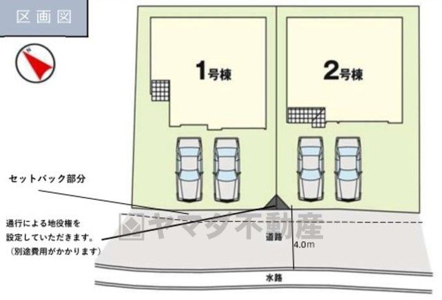 カースペースは並列2台分^^ ご夫婦で1台ずつ所有出来ます^^ 前面道路は公道南西側約4m。