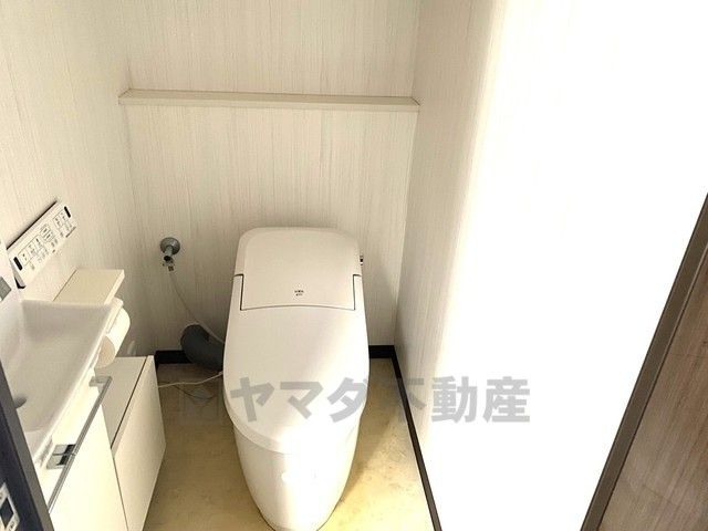 温水洗浄機付トイレです。節水機能もあるので、安心して使えますね。