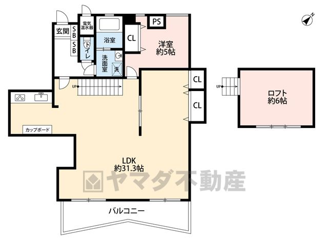 最上階大空間+ロフト付!開放感あふれる31帖以上のLDK。