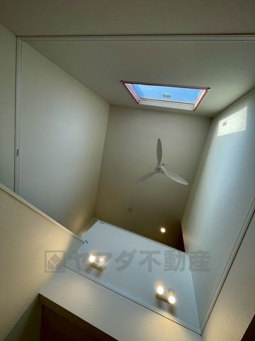 シーリングファン付きのリビングです。堀上天井に装着されており素敵な空間です。エアコンの効き具合も良く、電気代も節約できて嬉しいですね^^