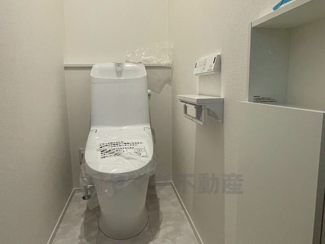 温水洗浄機付トイレです。節水機能もあるので、安心して使えますね。もちろん、1階2階の2ヶ所にトイレがあるので、忙しい朝にもゆとりができますね。