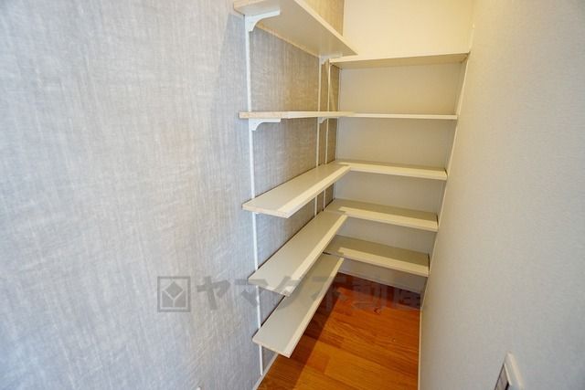 同仕様写真。キッチン横パントリー。まとめ買いした食品やインターネットでケース購入した飲料水なども、ストックしておくのに便利です。