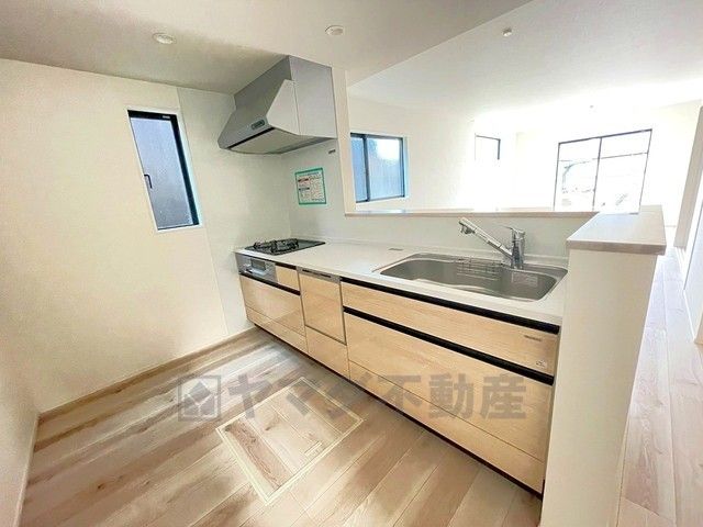 対面式カウンターキッチンでお子様の様子が見守れます。カウンタートップは耐熱性に優れており、日ごろのお掃除もふき取るだけでOK。ステンレスシンクも簡単にお掃除できますよ。
