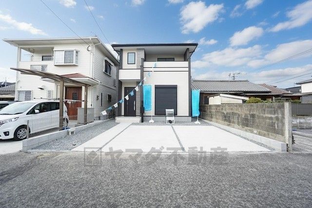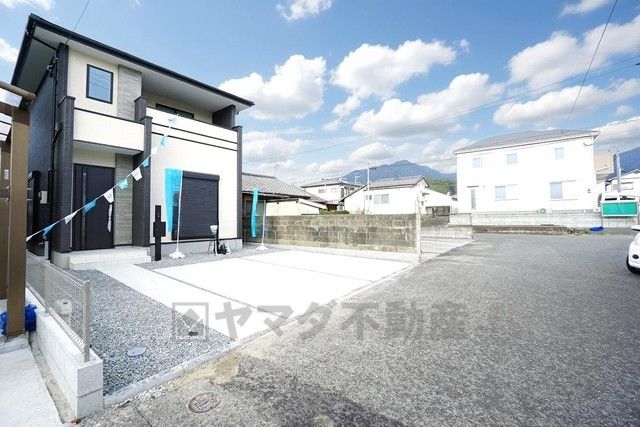 並列駐車3台分を確保。 前面道路は公道南東側約5.7m。 余裕を持って駐車出来ます^^ 須恵IC入口まで車で約11分(3.3km)遠出のお出かけに便利^^