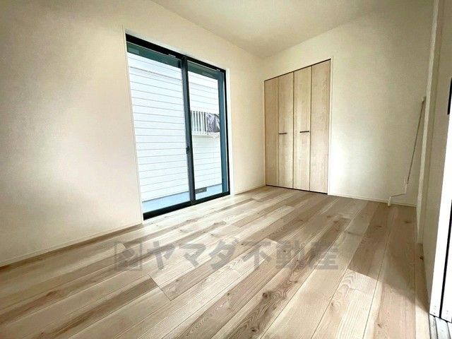 バルコニーに面した温もり溢れる明るいお部屋。デザインクロスが2階洋室の雰囲気を上品に仕上げています。大型ベッドを置いても余裕の広さを確保しています。