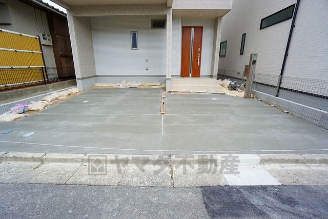 2号棟。カースペースは並列2台分。 西側公道4.6m、北側公道6.1m。 交通量も少なく余裕を持って駐車出来ます^^