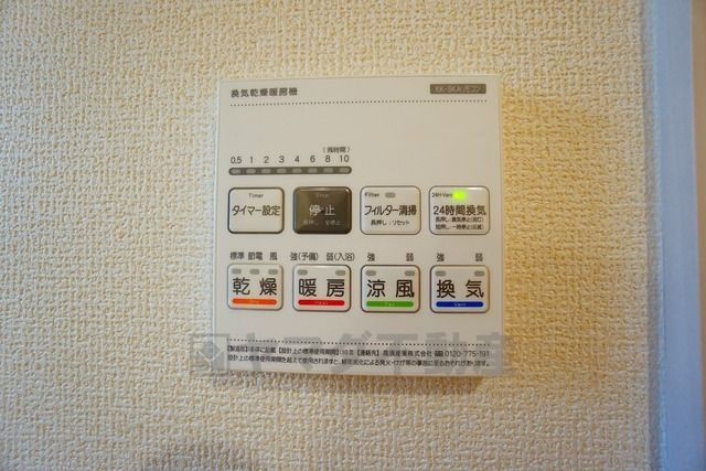 雨の日の洗濯も安心できる浴室暖房乾燥機付き浴室。リモコンで操作もボタン1つで簡単。 浴室暖房乾燥機には、暖房、乾燥、涼風、換気の4つの機能が付いています。タイマー付きです。
