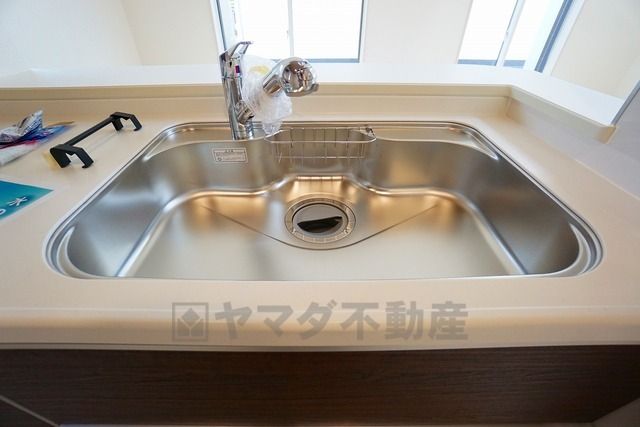 広々とした凸型シンクに洗剤ポケットを標準装備。大きなお鍋など洗いやすいです。洗剤や石鹸、スポンジもすっきりできる収納付き。