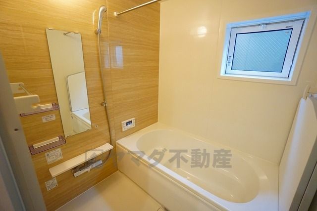 1日の疲れを癒すくつろぎのバスルーム。足を伸ばしてもゆったりと入れるサイズです。お子様と一緒にお風呂に入っても狭くないですね^^