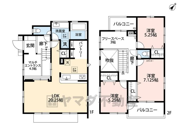LDK20.2畳(1F)、その他4.5畳(1F)、洋5.2畳(2F)、洋7.1畳(2F) |
