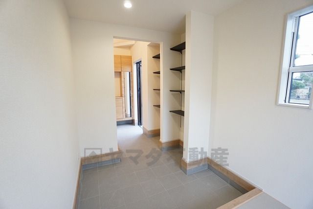畳コーナーから出入りできる土間のマルチスペースがあり、自転車やアウトドア用品を雨風からしのげますね^^