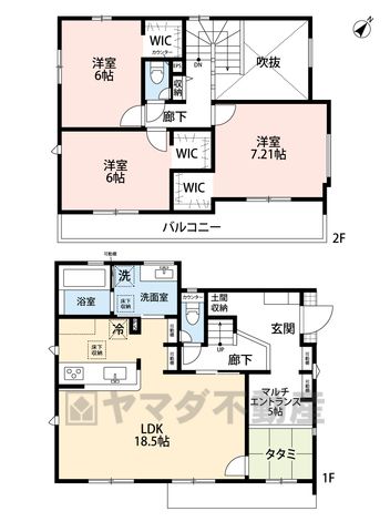 LDK18.5畳(1F)、その他5畳(1F)、洋6畳(2F)、洋7.2畳(2F) |