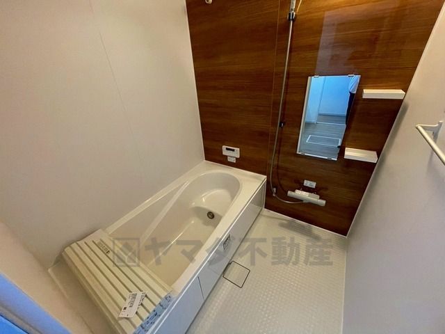 1日の疲れを癒すくつろぎのバスルーム。足を伸ばしてもゆったりと入れるサイズです。お子様と一緒にお風呂に入っても狭くないですね^^