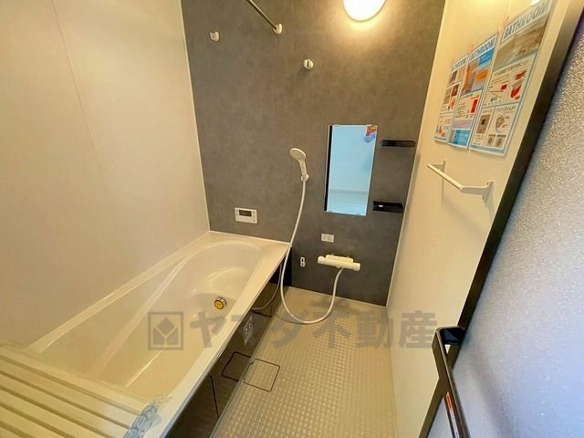1日の疲れを癒すくつろぎのバスルーム。足を伸ばしてもゆったりと入れるサイズです。お子様と一緒にお風呂に入っても狭くないですね^^