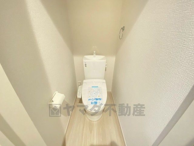 温水洗浄機付トイレです。節水機能もあるので、安心して使えますね。 2ヶ所にトイレがあるので、忙しい朝にもゆとりができますね。