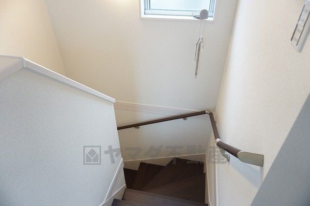 同仕様写真。ご年配の方でも安心できる、手すり付き階段です^^段差も低めで設定されてますので安全性にも優れてますね^^