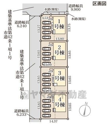 4号棟。全棟カースペースは並列4台分を確保^^ご夫婦で1台ずつとご友人や急な来客があっても安心です^^前面道路は公道西側約6.2m。