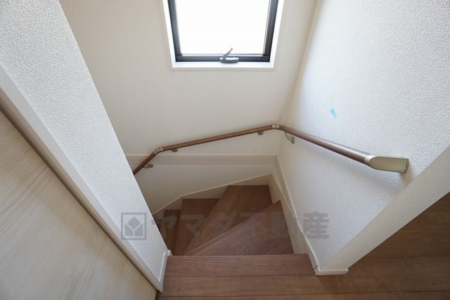 同仕様写真。ご年配の方でも安心できる、手すり付き階段です^^段差も低めで設定されてますので安全性にも優れてますね^^