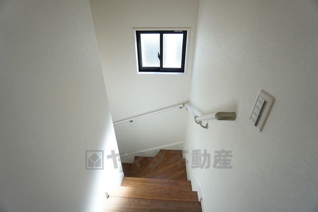 同仕様写真。ご年配の方でも安心できる、手すり付き階段です^^段差も低めで設定されてますので安全性にも優れてますね^^