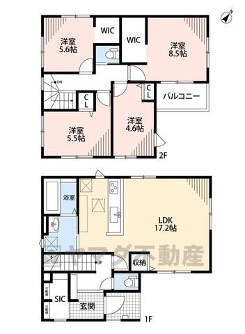 LDK17.2畳(1F)、洋8.5畳(2F)、洋5.6畳(2F)、洋5.5畳(2F)、洋4.6畳(2F) |