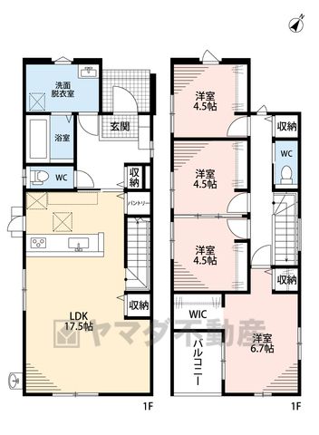 LDK17.5畳(1F)、洋6.7畳(2F)、洋4.5畳(2F) |
